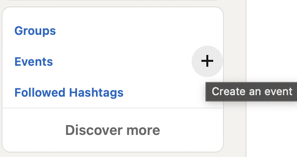 2. on the left side of the screen, click the + Add icon next to Events add audio event on LinkedIn