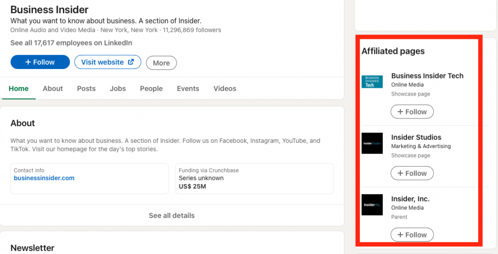 For example, the publishing company Business Insider has its own page on LinkedIn. But it has also created Showcase Pages for its subpages. Now, those interested in information only from Business Insider Tech can follow this particular LinkedIn Showcase page.