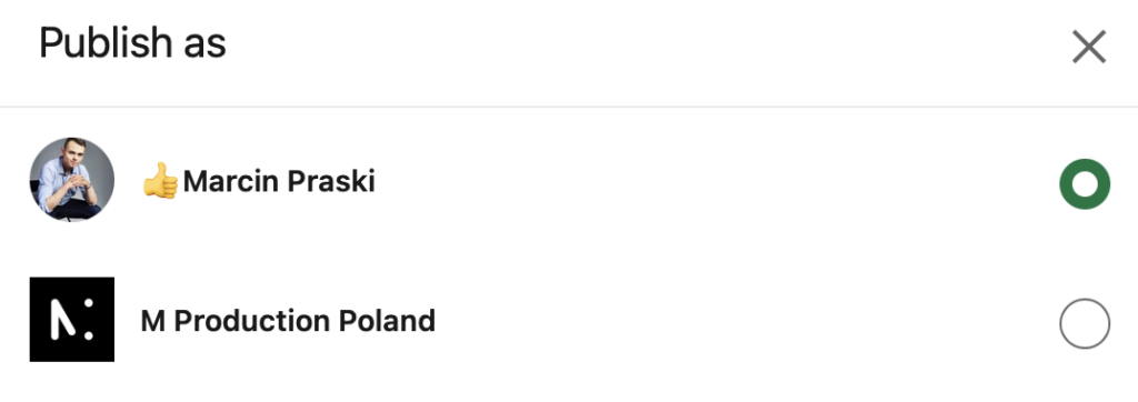 2. a panel will open to select which account you want to write the article from, select the account and click next